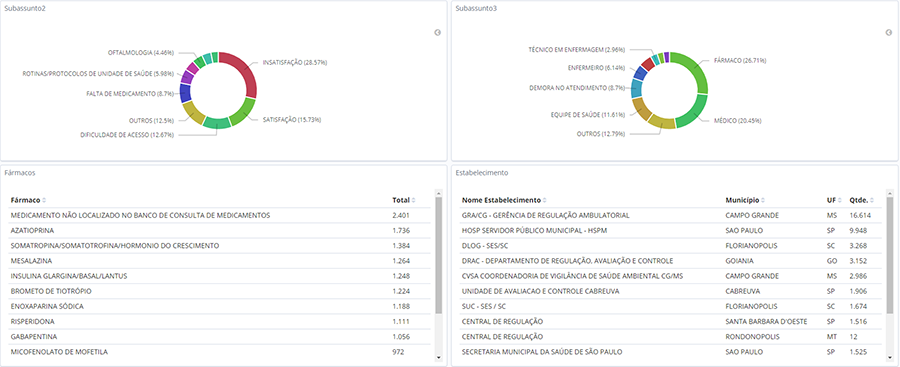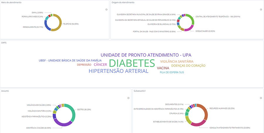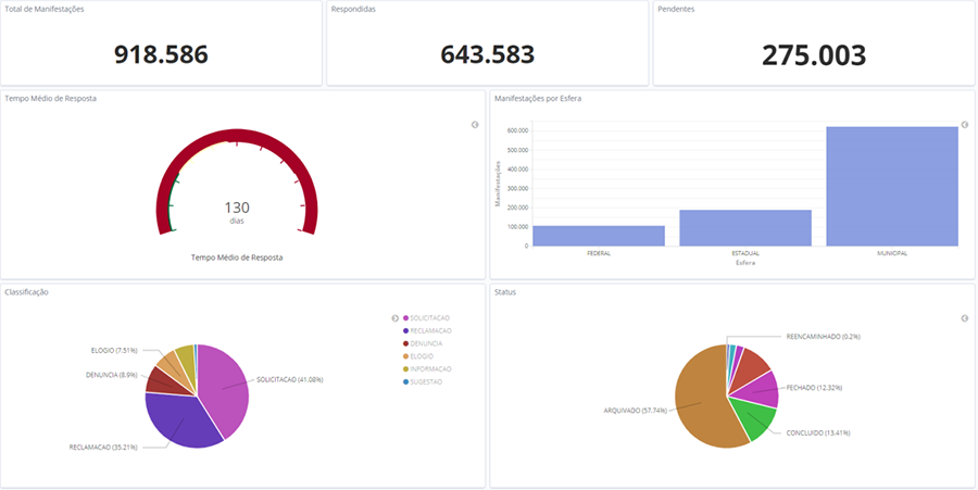 A seguir são apresentados alguns exemplos de informações disponibilizadas em forma de painéis, de ouvidorias que auxiliam na transparência das informações. Clique na seta e veja a variedade de apresentações.