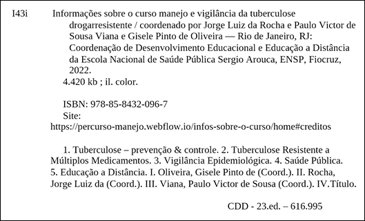 FIOCRUZ. Escola Nacional de Saúde Pública Sergio Arouca. Coordenação de Desenvolvimento Educacional e Educação a Distância. Informações sobre o Curso Manejo e Vigilância da Tuberculose Drogarresistente. Rio de Janeiro: CDEAD/ENSP/Fiocruz, 2021. 1 recurso eletrônico. Material didático digital.